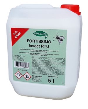 FORTISSIMO Insect RTU ist ein hochwirksames Produkt zur Bekämpfung von Fliegen, Mücken, Bremsen, Läusen, Spinnen, Wespen, Ameisen, Schaben, Silberfischchen usw. in Innenräumen und in Milchviehställen.